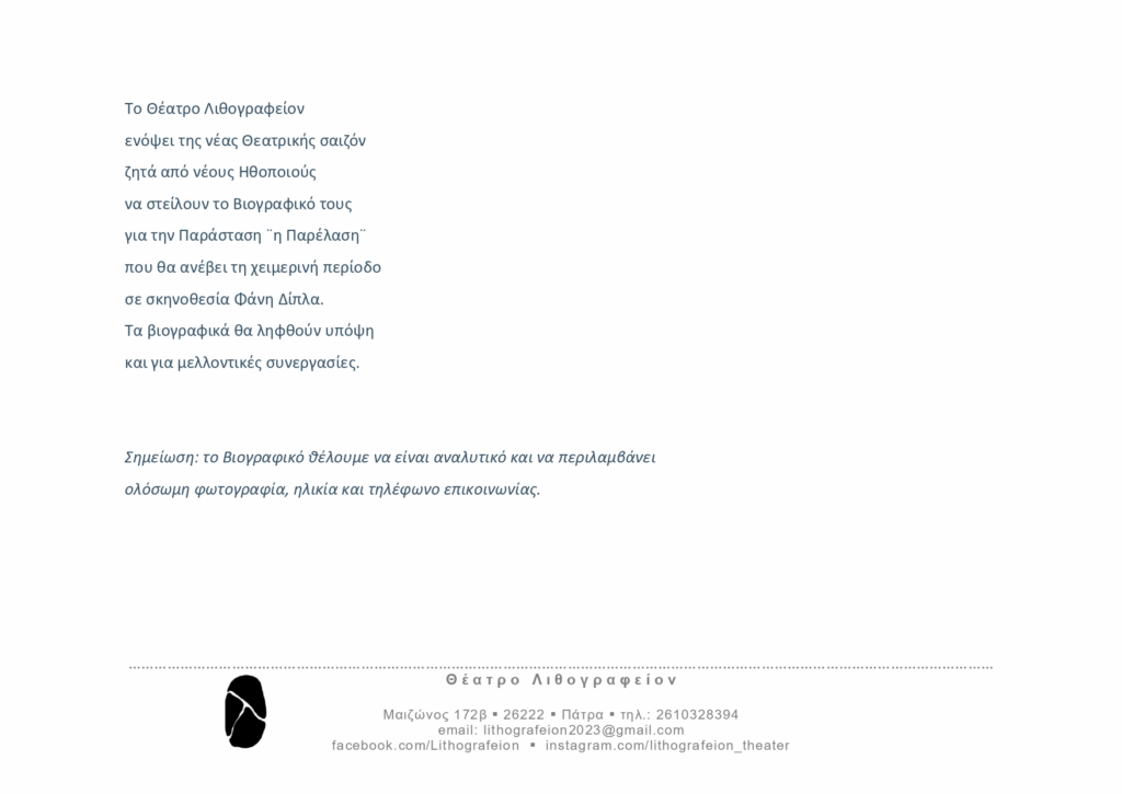 #Λιθογραφείον#CastingCall#ΗΠαρέλαση#Θέατρο#PatraTheater#NewActors