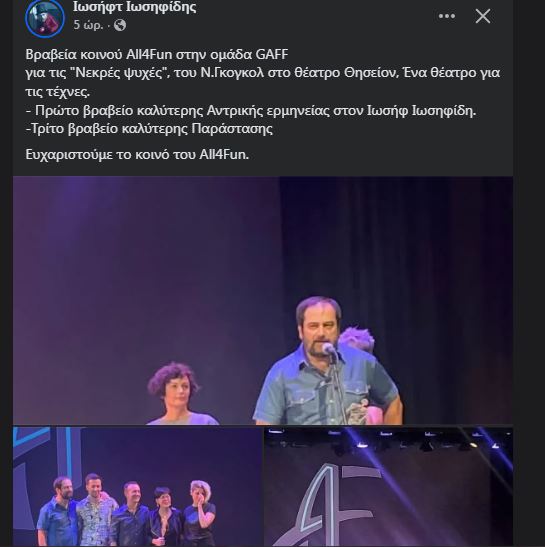 Αναλυτικά όλοι οι νικητές των 11ων Θεατρικών Βραβείων Κοινού All4fun: