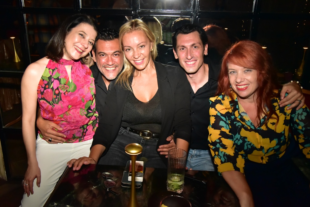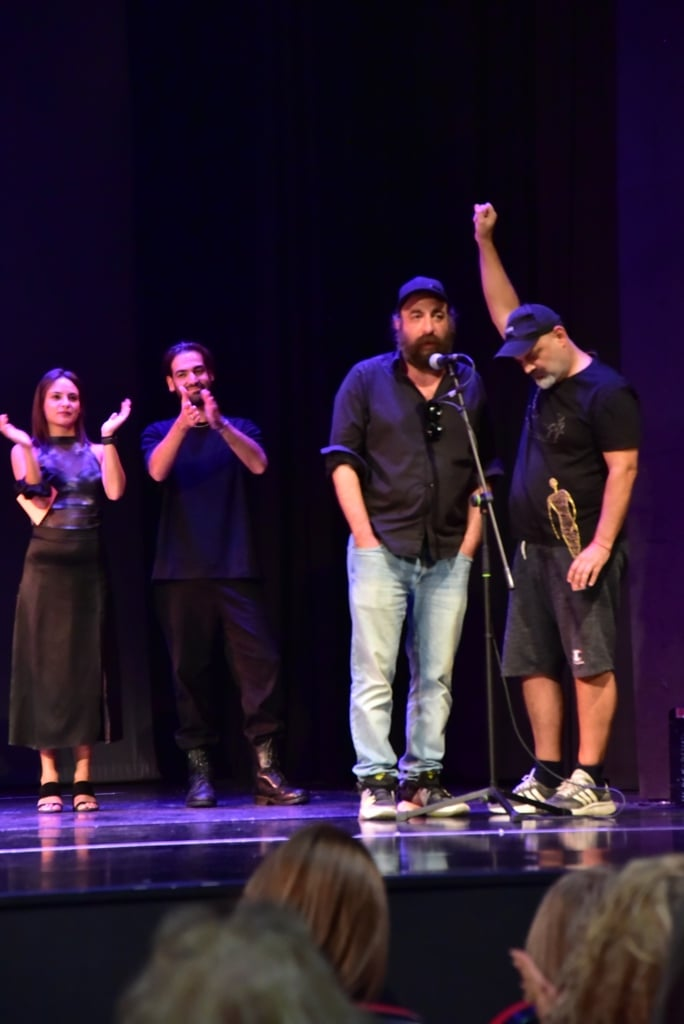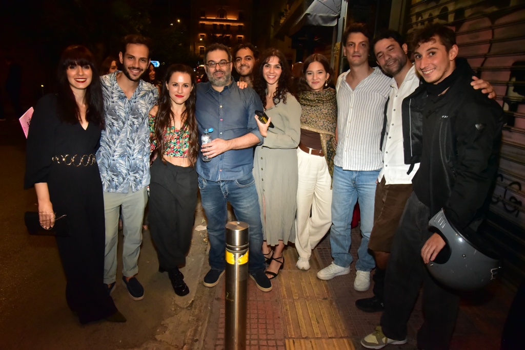 Ο σκηνοθέτης και κειμενογράφος της εκδήλωσης Μίμης Καπέρδος με τους Κυριάκο Κουρουτσαβούρη, Πέγκυ Ψαρρού, Μπράτη, Νικόλ Ιακωβάκη, Ειρήνη Πρεβεζάνου