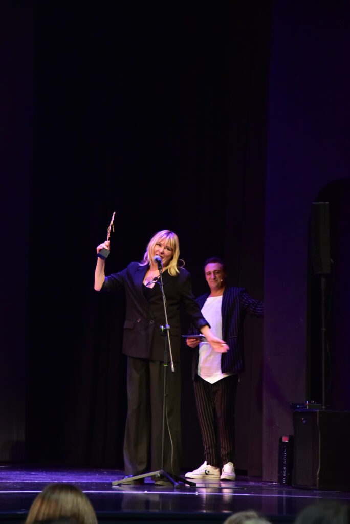 Την απονομή πραγματοποίησαν οι ηθοποιοί και μέλη του θιάσου “Η μητέρα του σκύλου”, που θα συνεχιστεί για 2η σεζόν στο Θέατρο Ακροπόλ, Νικόλ Δημητρακοπούλου και Τρύφωνας Μπάρκας.