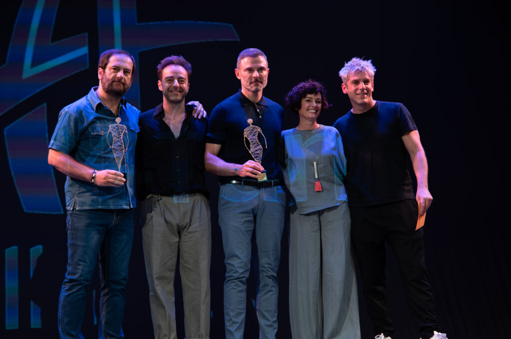 Οι νικητές στην κατηγορία καλύτερης παράστασης με τους παρουσιαστές Γιάννη Βασιλώττο, Βαγγέλη Αλεξανδρή και τους απονεμητές Νικόλ Δημητρακοπούλου, Τρύφωνα Μπάρκα