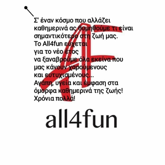 Το All4fun εύχεται για το νέο έτος να ξαναβρούμε όλα εκείνα που μας κάνουν χαρούμενους και ευτυχισμένους…