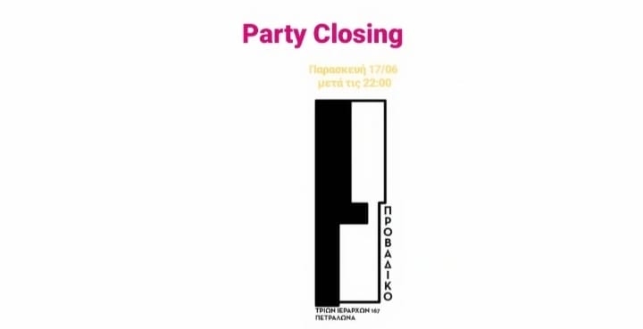 Την Παρασκευή 17 Ιουνίου σας περιμένουμε μετά τις 22:00 στο Προβάδικο να πιούμε ποτάρες και κοκτειλάρες, να ακούσουμε μουσικάρες & να χορέψουμε μέχρι πρωίας αποχαιρετώντας την φετινή σεζόν και καλωσορίζοντας το καυτό καλοκαίρι!