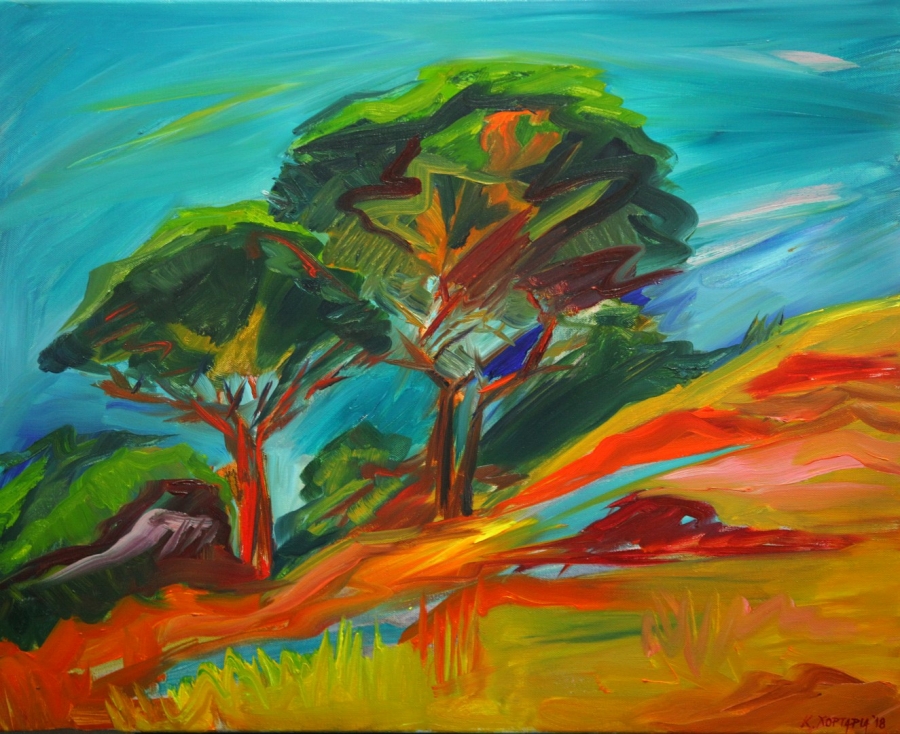 [Κεντρική φωτογραφία: Χορταριά Κατερίνα, Ικαρία, Λάδι σε καμβά, 50x60cm]