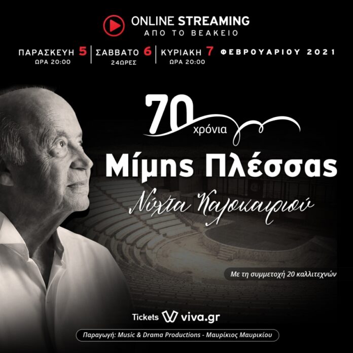 Πώληση ηλεκτρονικού εισιτηρίου: www.viva.gr/tickets/music/streaming/70-xronia-mimis-plessas