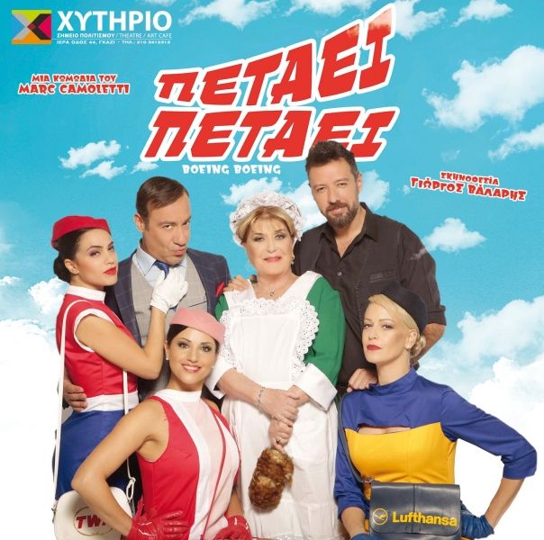 Στην Ελληνική απόδοση της κλασικής φάρσας του Γάλλου Marc Camoletti «BOEING BOEING», που μετά το  West End και το Βroadway παρουσιάζεται και στην Ελλάδα,  ο Σωτήρης (Σωτήρης Καλυβάτσης) ως σύγχρονος play boy  και πετυχημένος αρχιτέκτονας,   παίζει σε τριπλό ταμπλό το επικίνδυνο χόμπι της πολυγαμίας με 3 όμορφες αεροσυνοδούς, την Τουρκάλα Μπαχάρ (Σοφία Παυλίδου), την Αμερικανίδα Γκλόρια (Κόνι Μεταξά), και την Γερμανίδα Γκρέτχεν (Ρέα Τουτουντζή)  που οι πτήσεις τους τις φέρνουν καθημερινά, αλλά χώρια, στην ερωτική του φωλιά.