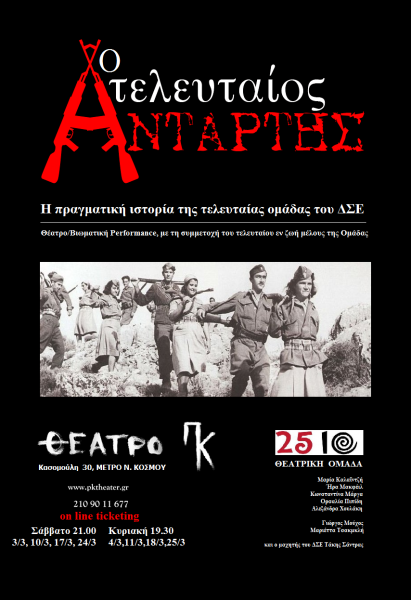 Παράλληλα, η θεατρική αφήγηση ενισχύεται από τη βιωματική, εν σκηνή, του 93χρονου σήμερα Τάκη Σάντρα, τελευταίου εν ζωή μέλους της ομάδας.