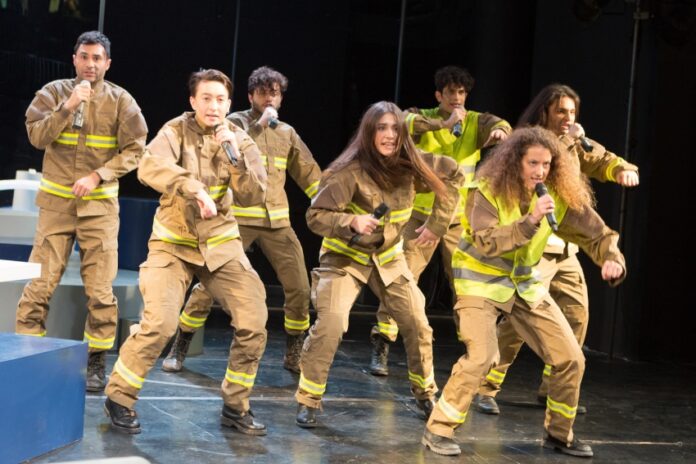 Από τη μία, ο Γκόντλιεμπ Μπίντερμαν που πρέπει να αποφασίσει αν θα προσφέρει στέγη (κι ας είναι και μια γωνίτσα στη σοφίτα του) σ’ αυτούς τους δύο επισκέπτες απ’ την κόλαση, αν θα αντιδράσει στην απειλή ή θα παραδοθεί. Κι από την άλλη, ένας χορός εφήβων που η σκηνοθέτις Σοφία Βγενοπούλου τοποθετεί σκόπιμα στο κέντρο της ιστορίας: είναι εκείνοι που τη φυλάσσουν, την αφηγούνται και, ταυτόχρονα, εκείνοι που την παρακολουθούν καθώς ξετυλίγεται.