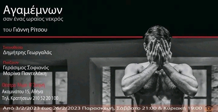 “ΑΓΑΜΕΜΝΩΝ” ΤΟΥ ΓΙΑΝΝΗ ΡΙΤΣΟΥ, ΣΕ ΣΚΗΝΟΘΕΣΙΑ ΔΗΜΗΤΡΗ ΓΕΩΡΓΑΛΑ, ΣΤΟ ΘΕΑΤΡΟ ΑΛΜΑ – Β’ ΣΚΗΝΗ, ΑΠΟ ΤΙΣ 3 ΦΕΒΡΟΥΑΡΙΟΥ 2023