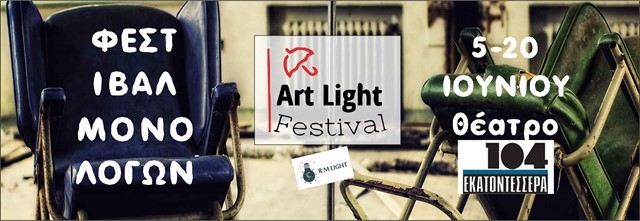 Η RM LIGHT, διοργανώνει το 1ο φεστιβάλ μονολόγων “Art Light Festival”, από 5 έως 20 Ιουνίου 2019, στο ΘΕΑΤΡΟ 104 και προσκαλεί συγγραφείς και επαγγελματίες και ερασιτέχνες ηθοποιούς να λάβουν μέρος.