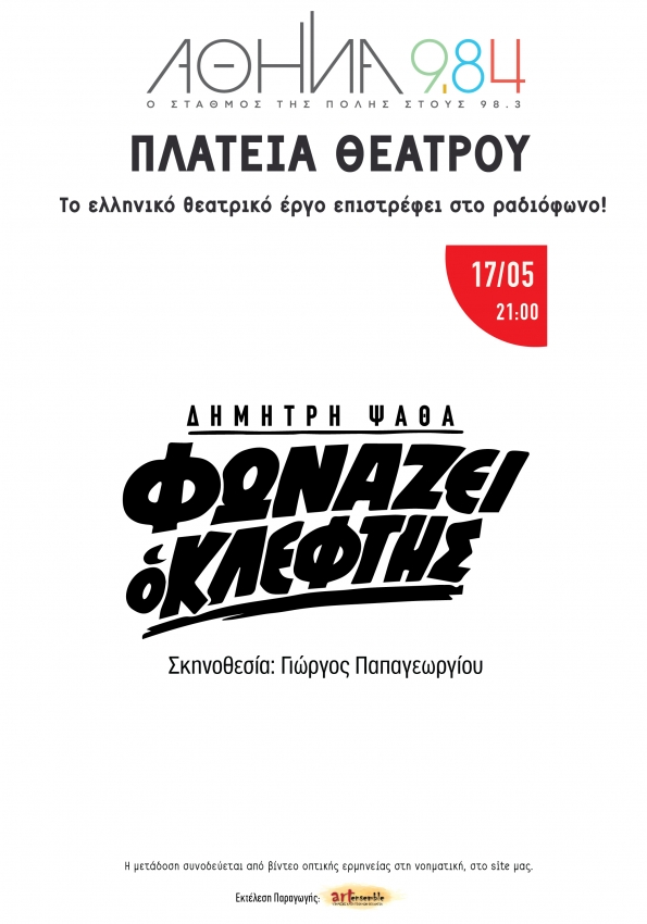 «Φωνάζει ο κλέφτης» του Δημήτρη Ψαθά, σε σκηνοθεσία του Γιώργου Παπαγεωργίου, στο πρόγραμμα «Πλατεία Θεάτρου» του Αθήνα 9.84