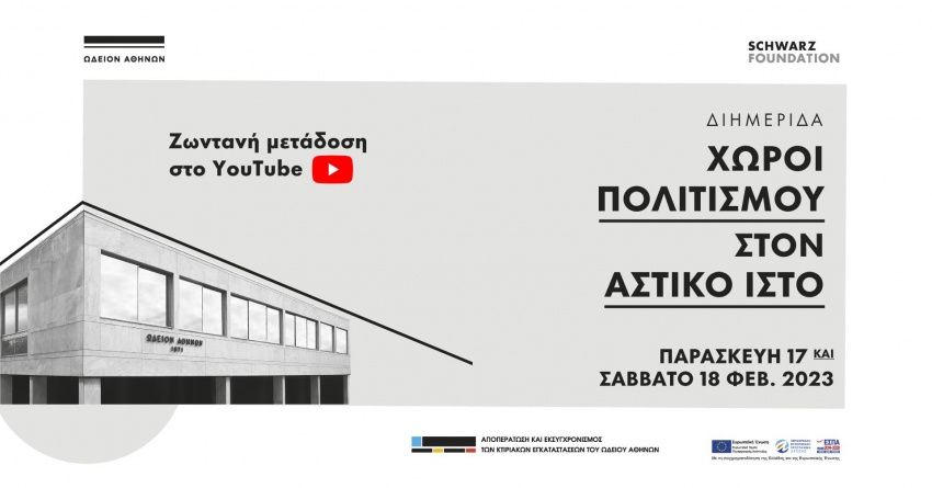 Το Ωδείο Αθηνών, με τη συνεργασία και την ευγενική υποστήριξη του Ιδρύματος Schwarz, διοργανώνουν Διημερίδα με θέμα «Χώροι πολιτισμού στον αστικό ιστό»: