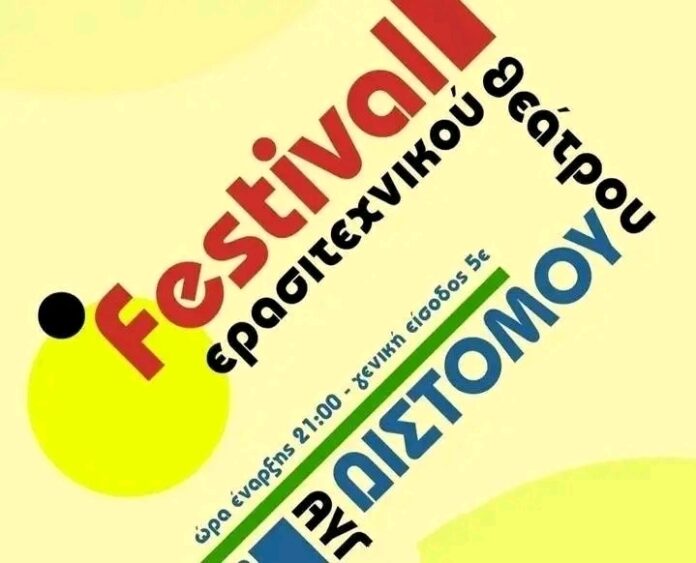 Το θεατρικό εργαστήρι Διστόμου “Θεατροφρενεια”, σε συνδιοργάνωση με τον Δήμο Διστόμου-Αράχωβας-Αντίκυρας, προκηρύσσει το 13ο πανελλήνιο φεστιβάλ ερασιτεχνικού θεάτρου Διστόμου που θα διεξαχθεί από τις 18 έως τις 24 Αυγούστου 2023 στο αμφιθέατρο Μαυσωλειου Διστόμου, κάθε βράδυ στις 9 μμ.