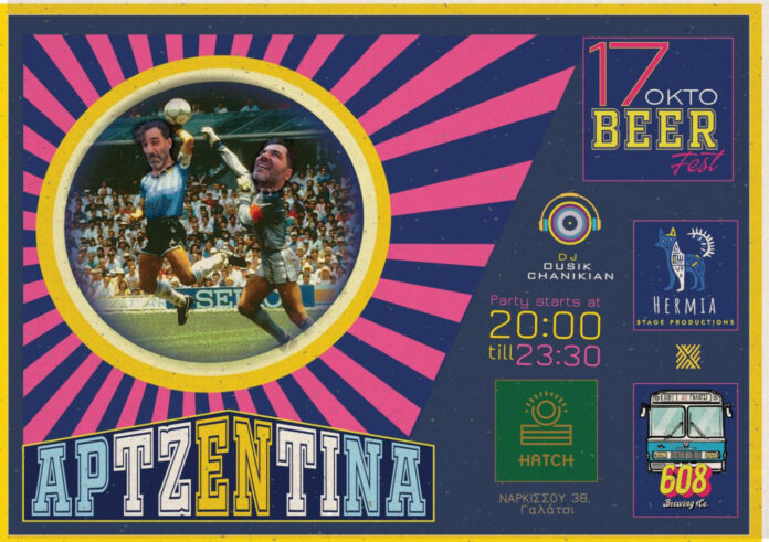 Η HERMIA STAGE PRODUCTIONS και η 608 BREWING Co. σας προσκαλούν την Παρασκευή 17 ΟΚΤ στις 20.00 στο Hatch σε ένα εορταστικό event για την επικείμενη έναρξη παραστάσεων του θεατρικού έργου ” ΑΡΤΖΕΝΤΙΝΑ”.