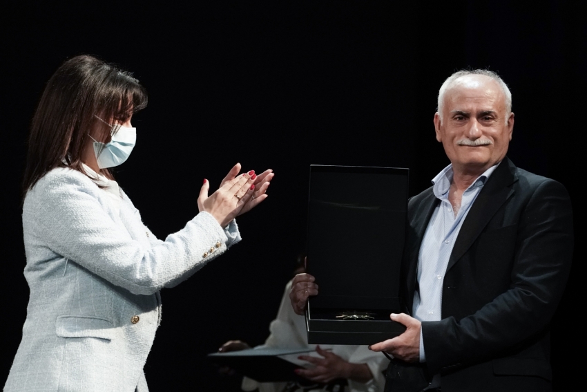 Στη σημερινή τελετή ο Δήμαρχος Αθηναίων Κώστας Μπακογιάννης απένειμε το Βραβείο «Κάρολος Κουν» Σκηνοθεσίας Ελληνικού Έργου στον Πέτρο Ζούλια για την παράσταση «Μαρίκα».