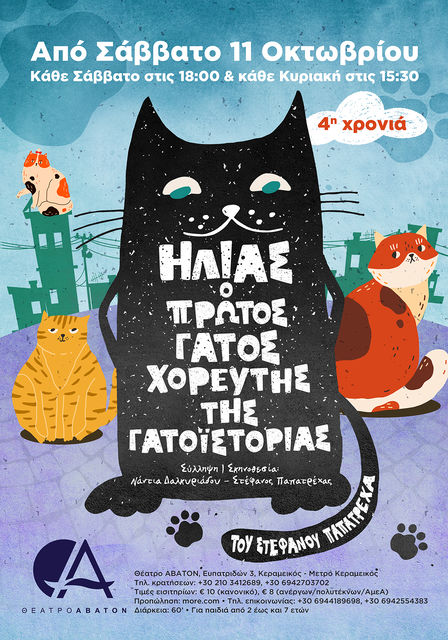 Μετά τους τρεις πρώτους άκρως επιτυχημένους κύκλους παραστάσεων, ο γάτος Ηλίας και η παρέα του ξεκινούν για τέταρτη συνεχόμενη χρονιά το μαγικό ταξίδι τους στη γατοσυνοικία του Θεάτρου Άβατον και περιμένουν όλα τα παιδιά από 2 έως και 7 ετών να γίνουν συνοδοιπόροι τους.