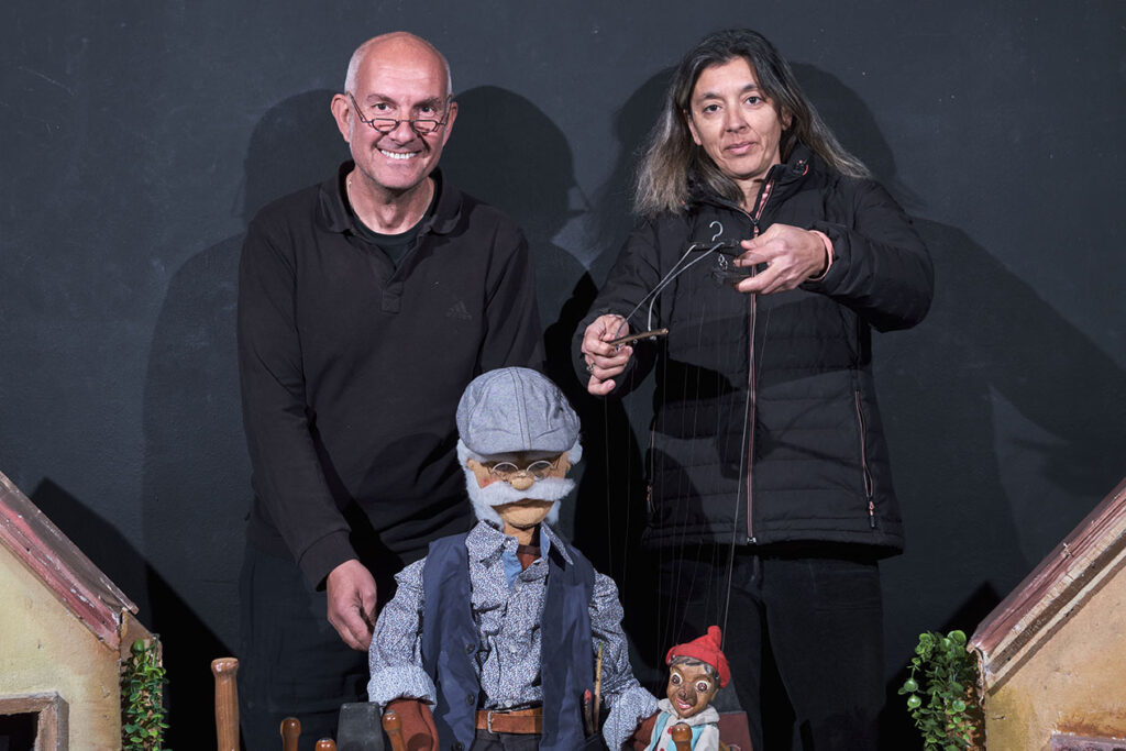 Η παράσταση είναι μία μεταφορά του κλασσικού αριστουργήματος του Κάρλο Κολλόντι σε θέατρο με διάφορα είδη κούκλας όπως μαριονέτες, γιαγαντόκουκλες, μαρόττες κλπ.