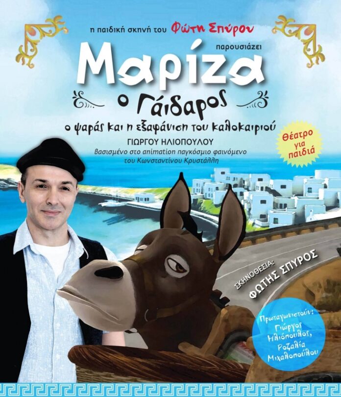 Η παιδική σκηνή του Φώτη Σπύρου παρουσιάζει την παράσταση «Μαρίζα ο Γάιδαρος – Ο ψαράς και η εξαφάνιση του καλοκαιριού» του Γιώργου Ηλιόπουλου βασισμένη στο ομώνυμο animation του Κωνσταντίνου Κρυστάλλη.