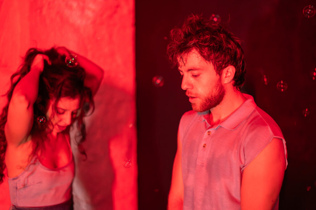 Η σκηνή γίνεται πεδίο εσωτερικής αναμέτρησης, όπου διαφορετικές εκφάνσεις μιας εμπειρίας παίρνουν σάρκα και οστά. Η αφήγηση αποκτά πολυφωνική διάσταση, με δύο ερμηνευτές να συνθέτουν ένα ενιαίο, αλλά συνεχώς μεταβαλλόμενο πρόσωπο και να συμπλέκονται σε έναν ρευστό σκηνικό χρόνο, φωτίζοντας τις αντιθέσεις, τις διακυμάνσεις  και τις πολλαπλές εκδοχές μιας προσωπικής ιστορίας, σε μια διαρκή ταλάντωση μεταξύ πραγματικότητας και θεάτρου.