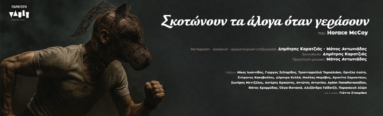 Ο Δημήτρης Καρατζιάς και ο Μάνος Αντωνιάδης μεταφέρουν στη σκηνή τη συγκλονιστική νουβέλα του Horace McCoy “Σκοτώνουν τα άλογα όταν γεράσουν”, από το Σάββατο 29 Νοεμβρίου κάθε Σάββατο και Κυριακή στις 20:30, για περιορισμένες παραστάσεις.