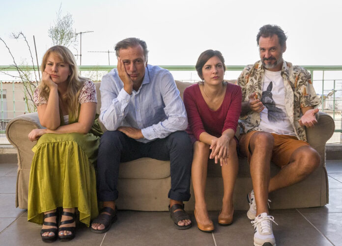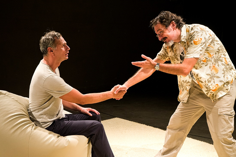 Και φυσικά τα κυρίως εύσημα θα αποδοθούν στον ίδιο με την ιδιότητα του σκηνοθέτη για το εξαιρετικό αποτέλεσμα που συνδύασε λιτότητα, σκηνική ευφυία, αισθητική, φαντασία, αποτελεσματικότητα… άλλωστε για την αφαιρετική και απλούστατη (αλλά καθόλου απλοϊκή) γραφή του Μπουκάι, η επιλογή της λιτότητας σε μια μίνιμαλ σκηνοθεσία ήταν μονόδρομος, ωστόσο εμπλουτίστηκε με μικρά έξυπνα ευρήματα επί σκηνής, δραματοποιώντας κάθε σύντομη ιστορία με ευφάνταστο τρόπο, ενδιαφέρουσα θεατρικότητα, ελάχιστα συμβολικά αξεσουάρ που έδιναν ενδεικτικά – αποτελεσματικά το εκάστοτε στίγμα, με συμμετοχή στη δραματοποίηση δυο γυναικών ηθοποιών καθισμένων στην πλατεία… Επιπλέον έδεσε εύστοχα με συνεχή ροή και ενότητα τις σκηνές των επισκέψεων που κατέληγαν κάθε φορά σε μια διαφορετική ιστορία συνυφασμένη με το θέμα της συνεδρίας, χρησιμοποιώντας μουσικές γέφυρες και αλλαγές φωτισμών, ενώ επένδυσε απρόσμενα και ευχάριστα σε μια ανάλαφρη κωμικότητα με φωτεινούς τόνους αισιοδοξίας σε μια παράσταση με ενέργεια, ζωντάνια, ρυθμό, ευρηματική έναρξη κι ακόμα πιο ευρηματικό, θεαματικό, συναισθηματικό φινάλε, όπου βέβαια δεν έλειψε το διαδραστικό κομμάτι με εμπλοκή των θεατών…