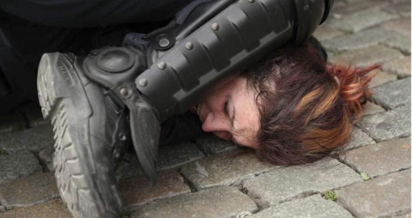 Η φωτογραφία είναι από το Βέλγιο, αλλά αυτό δε διαφοροποιεί τα δεδομένα σχετικά με τον τρόπο που διαχειρίζονται οι αστυνομικοί τα “θύματα” τους από τις διαδηλώσεις.