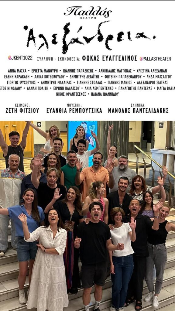 Νιώθω ενθουσιασμό και φυσικά, λίγο άγχος. Αλλά από το καλό το άγχος, αυτό που με κρατάει ζωντανή, σε εγρήγορση. Είναι η πρώτη μου επαγγελματική θεατρική εμφάνιση στην Ελλάδα και μόνο το ότι θα γίνει στο Πάλλας, με αυτή την ομάδα και αυτό το έργο, κάνει την εμπειρία αυτή ξεχωριστή. Η Αλεξάνδρεια δεν είναι απλώς μια ωραία παράσταση, έχει ψυχή, μιλά για τον άνθρωπο, για τον έρωτα, για την αλλαγή, για το πέρασμα από τον έναν κόσμο στον άλλον. Και το να είμαι μέρος αυτής της αφήγησης, με ανθρώπους που θαυμάζω, είναι πραγματικά μεγάλη τιμή. Οπότε ναι, ανυπομονώ πολύ και ελπίζω το κοινό να ταξιδέψει μαζί μας στην Αλεξάνδρεια.