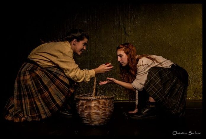 Για αρχή κρατήσαμε την επιλογή του συγγραφέα, δηλαδή την ιστορία να την αφηγείται η ίδια η ηρωίδα σε πρώτο πρόσωπο. Οι δύο ηθοποιοί, η Πέλια Γιαννουλάτου κι η Ηλιάνα Μπαφέρου, είναι το ίδιο πρόσωπο και προσπαθούν να μας αφηγηθούν το τι έζησαν όσο πιο απλά και κατανοητά μπορεί να γίνει. Μέσα από τις πρόβες γεννήθηκε η ανάγκη για χρήση σκηνικών αντικειμένων που δηλώνουν το πλήθος, και για τον καθορισμό της γεωγραφικής περιοχής ώστε να δηλώσουμε το χώρο. Για να το πούμε απλά, παίξαμε σαν παιδιά «πόλεμο» διερευνώντας αν λειτουργεί σκηνικά. Ορίσαμε τον χώρο με έναν αυτοσχέδιο χάρτη και φανταστήκαμε ότι έχουμε την Πελοπόννησο στα πόδια μας και πως όλα συμβαίνουν εκεί. Το όμορφο είναι ότι συμπαρασύρουμε το κοινό σε αυτή τη διαδικασία.